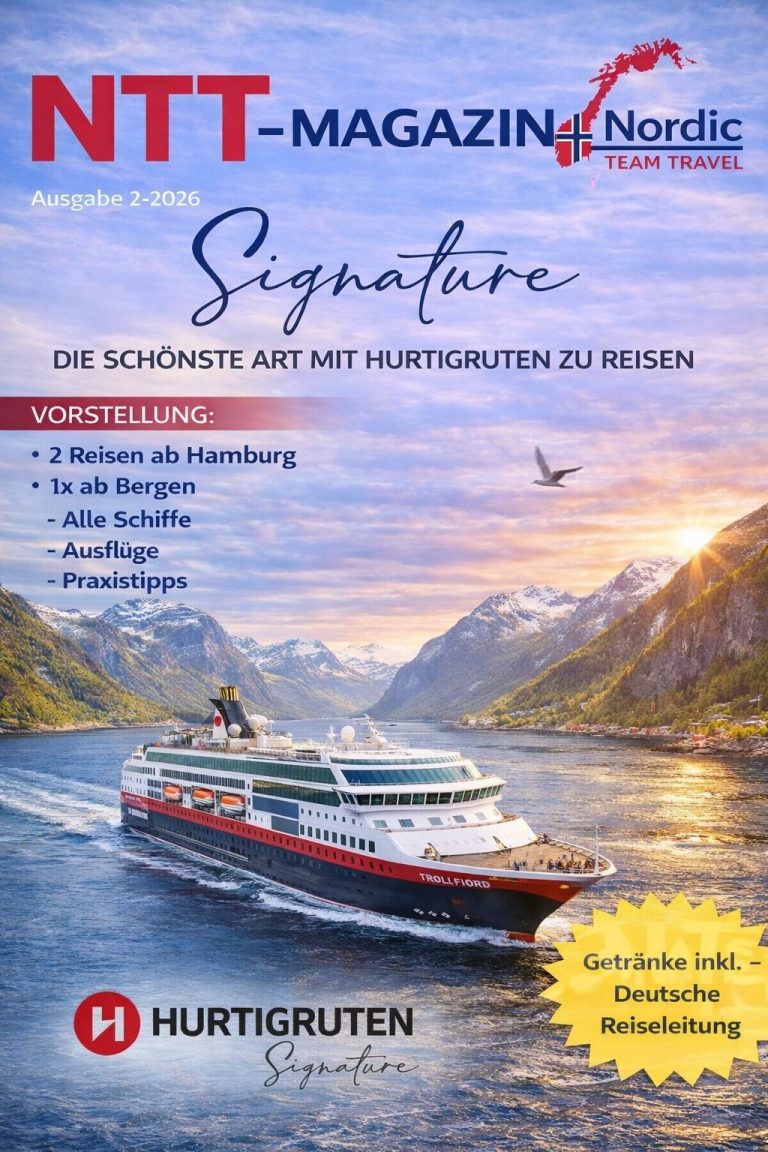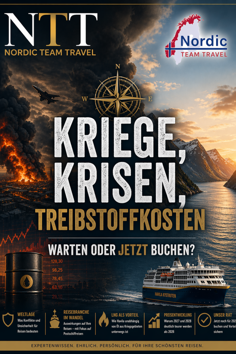 Willkommen zur ersten Ausgabe des NTT Magazins von Nordic Team Travel. Mit über 20 Jahren Erfahrung in Skandinavien bündeln wir für dich Wissen, Einblicke und konkrete Empfehlungen – kompakt, fundiert und sofort anwendbar für deine Reiseplanung. Im Premierenthema dreht sich alles um die klassische Postschiffreise entlang der norwegischen Küste: Was unterscheidet sie von einer Kreuzfahrt? Welche Häfen lohnen den Landgang? Wie sieht der Tagesablauf an Bord aus – und welche Kabine passt zu dir?